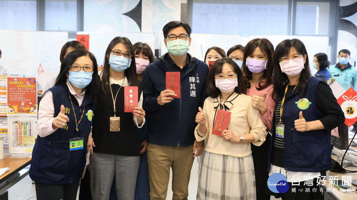 陳其邁表示,面對Covid-19疫情,醫護及防疫人員犧牲與家人團聚的時光,守住第一線捍衛市民健康,特地選在除夕至專責病房、呼吸道專診及急診為值班醫護加油打氣,發放慰問金紅包,親自送上年節祝福及感謝。且高雄在年節期間醫療量能充足,25家急救專責醫院皆開設急性呼吸道專診,因應就醫人潮壅塞、有效分流,請有需要的民眾多加利用。