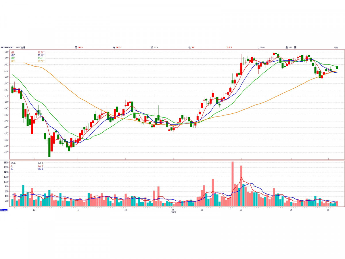 在新產品部分,凌通近期開發出高精度量測 IC,採用高算力 32 位元 CPU Cortex-M0 內核,除了24-bit 高精度 SigmaDelta ADC 外,還內置高速 12-bit SAR ADC 搭配使用,適於AIoT、氣體偵測、個人醫療產品等應用。目前已有高階耳溫槍、CO2量測等產品通過客戶的功能驗證,預計第二、第三季開始生產。