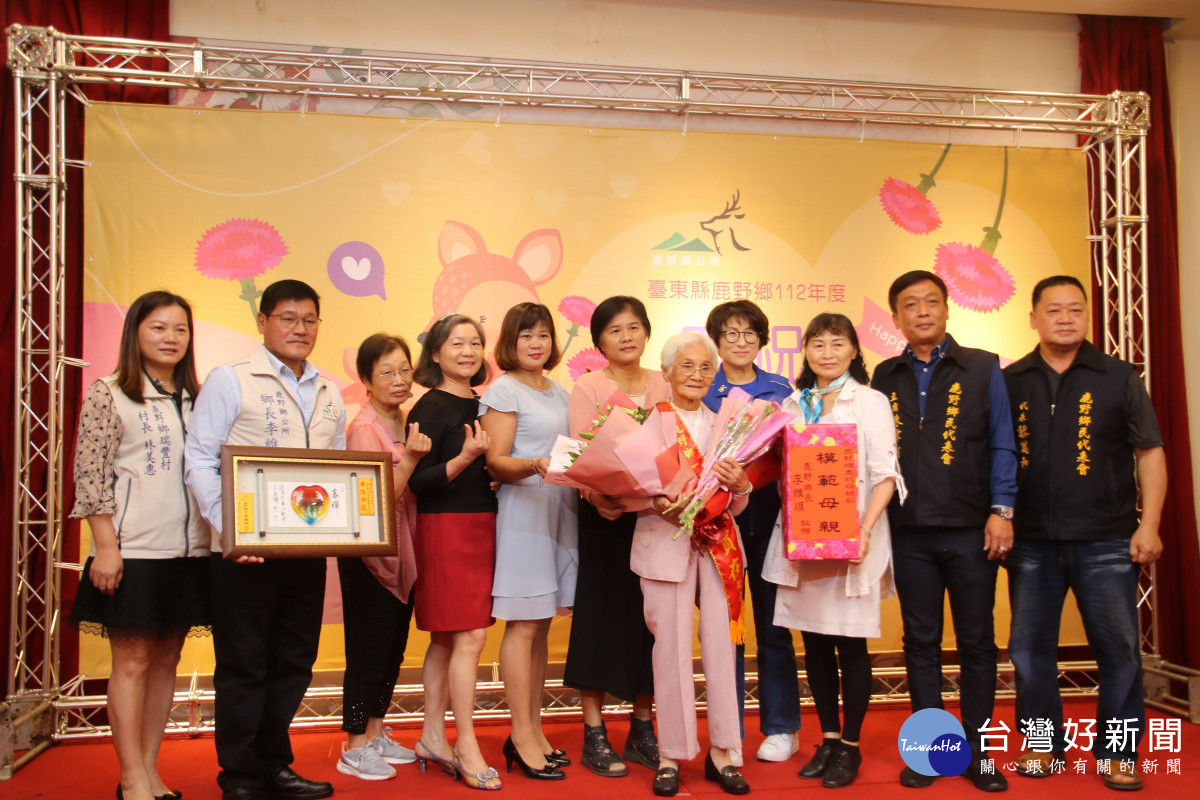 11日鹿野鄉母親節表揚大會安排和平部落舞蹈班的精彩表演節目,並由縣長、鄉長及農會三長頒發鏡屏、禮物給獲選受獎的模範母親及孝行楷模,而鄉公所也特別為獻上一束康乃馨花,陪同的家屬也爭相上台合影。