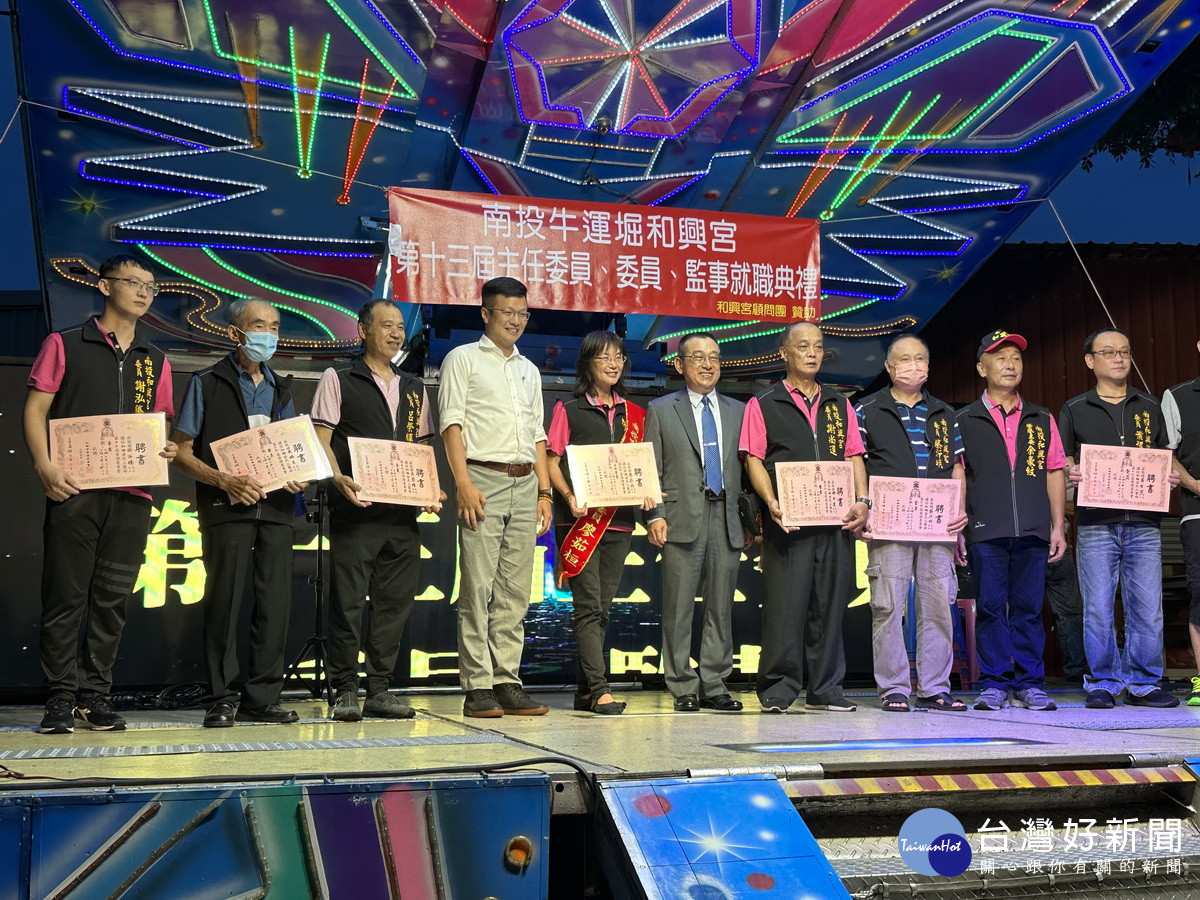 南投市牛運堀和興宮第十三屆主任委員、委員、監事就職典禮,30日晚間於該宮廣場盛大舉行,國防部後指部指揮官傅正誠中將特地南下出席盛會,為新任主委廖茹桓披掛彩帶也為委員監事等授聘書,傅中將強調廖主委長期以來都相當支持後備指揮部,後指部於全國設364個輔導中心,全國有18個縣市設部隊指揮部,肩負地方救災防災等任務,期許與地方共同合作維護地方愈來愈好。