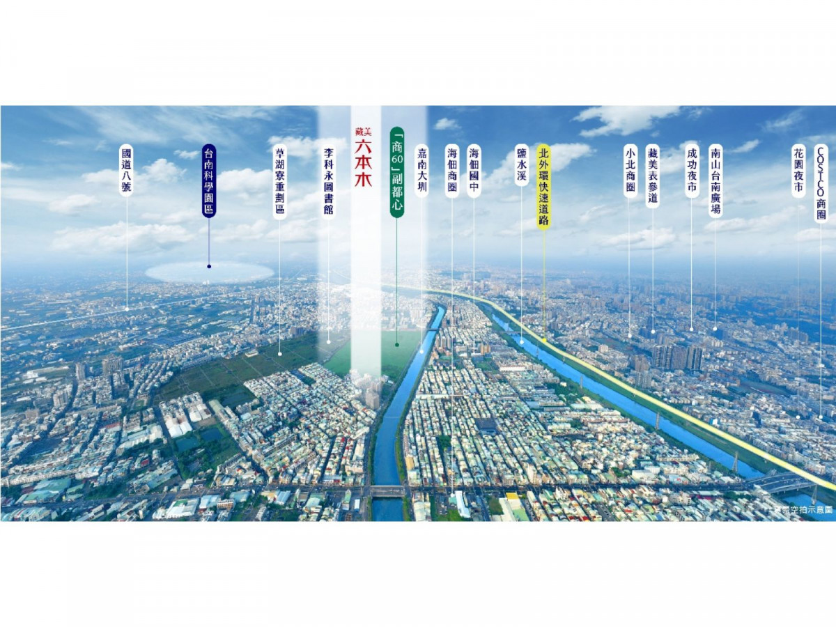 從「藏美六本木」到南科,未來連接北外環快速道路只需15分鐘車程,不僅減少通勤時間,更可直達台南科學園區,預估「商60」副都心生活圈將成為南科菁英新聚落,「工作在南科 生活在市心」,複製竹科發展經驗,在科學園區與交通建設加持下,「商60」副都心目前仍屬低基期,未來漲勢可期。
