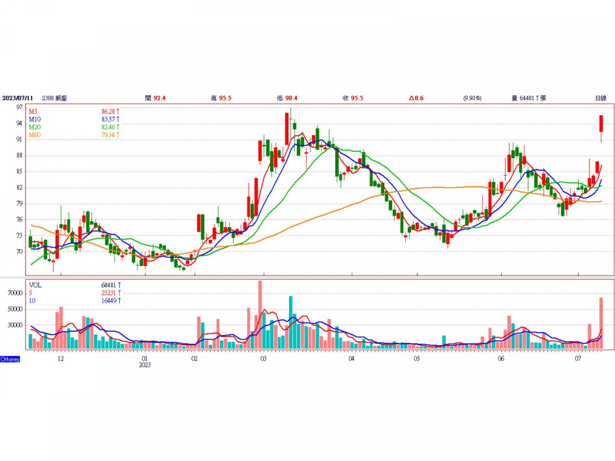 理周投研部表示,威盛股價11日爆出6.429萬張跳空漲停,W底完成突破前波高點94.8元已來到95元,轉機意味強,上半年營收年增37%,欲虧轉盈必需下半年營收年增達50%以上才有機會,觀察AI端的需求持續爆增,加上疫情解封後汽車銷量也大幅成長,威盛ASCI晶片也成功導入一線車廠,因此機會很大,這是股價受到青睞原因。