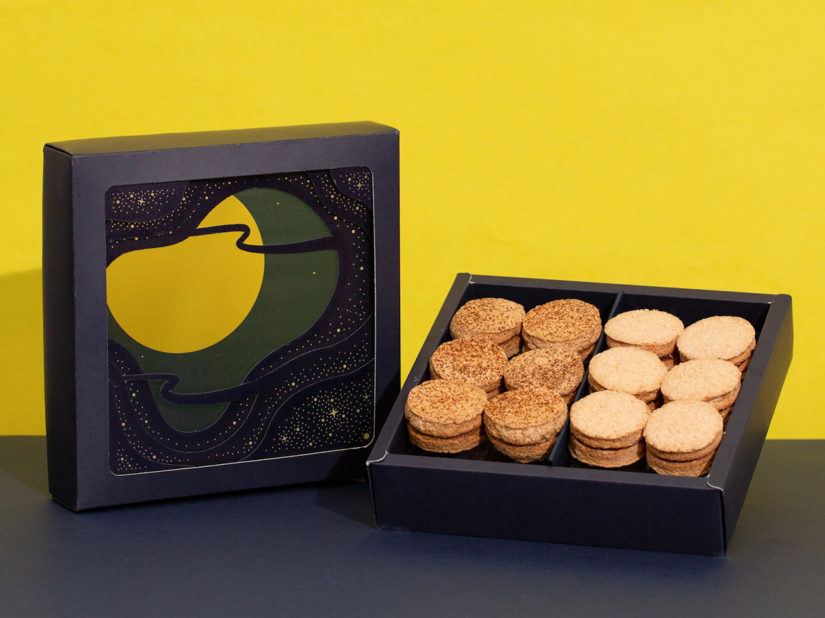 台南晶英酒店向來以串連在地特色貫穿品牌文化,首款「月影食光」是由點心房主廚廖楷平研發的鳳香果果晶酥餅,手工揉製的餅皮完美呈現奶油酥餅的風味,內餡選用富含維生素的關廟鳳梨與百香果,一口咬下即可感受到濃郁的奶香與水果酸甜交織的美味,整體酥鬆香甜、柔韌卻不黏牙,再搭配林三十六凍頂山立體茶包,禮盒設計簡約大方,是佳節團聚的飯後點心首選。