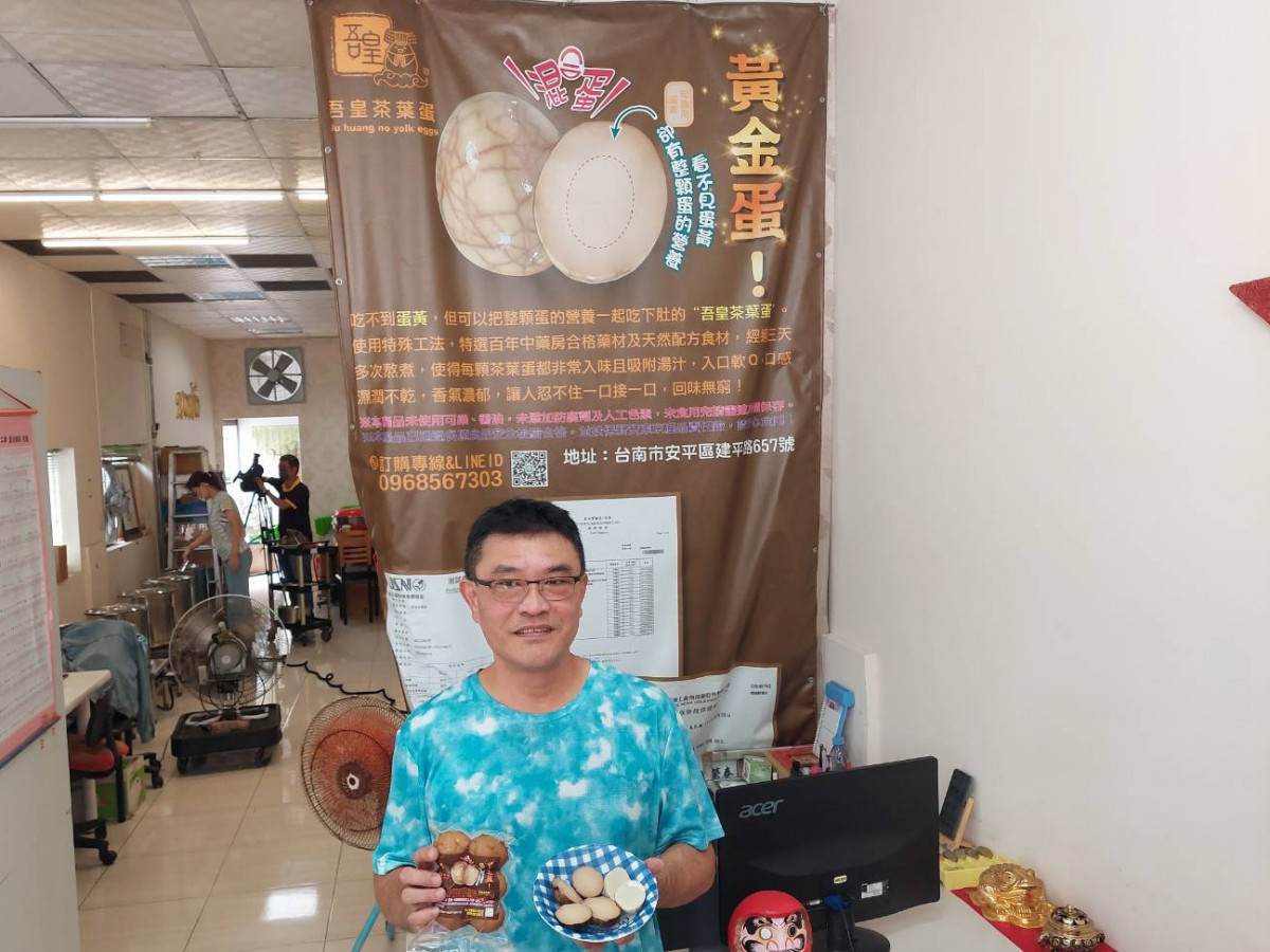 吾皇茶葉蛋是將蛋白與蛋黃混合成一體,看不到蛋黃卻能吃到蛋黃的營養而獲得「混和蛋」結構的新專利陳建燁說,這項專利不藏私,有意要開班授課,讓其家庭化。