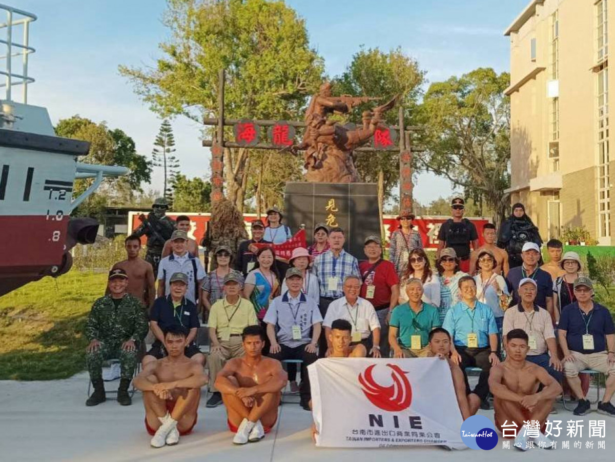 台南市進出口商業同業公會敬軍團由理事長李永炫率團,一行20多人,13日依序慰訪陸軍烈嶼守備大隊、金門防衛指揮部及航特部兩棲營等單位,受到官兵熱烈歡迎,理事長李永炫逐一致贈慰問金,並感謝官兵守疆衛土的辛勞與貢獻。