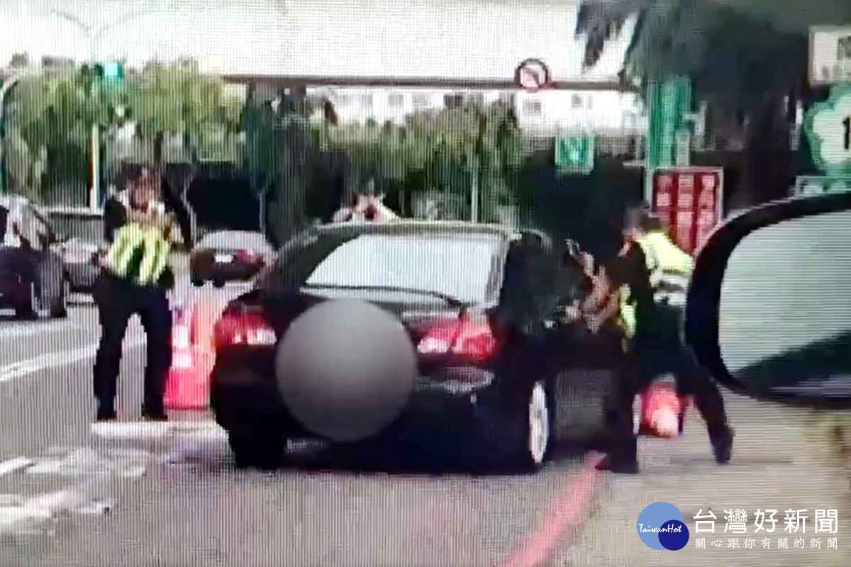 該黑色轎車不理會員警指揮,員警以交通錐擋住該車前進,並要求駕駛人下車盤查,未料該車先是偽裝配合停止,待洪姓員警趨前時卻踩下油門欲衝撞逃逸,幸好洪員緊急側跳未被撞傷,洪員立即掏槍朝該車輪胎處射擊4發,但仍被該車兔脫,朝國道1號南下方向逃逸。