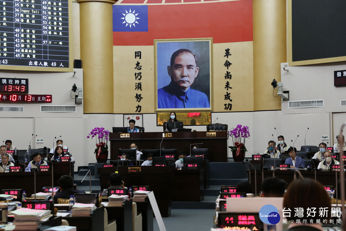 台南市議會13日下午回復大會,由議長邱莉莉擔任主席,討論10月5日因小犬颱風停會1天其後續相關議程變更事宜,第2次定期會會期順延1天,調整於12月1日閉幕。
