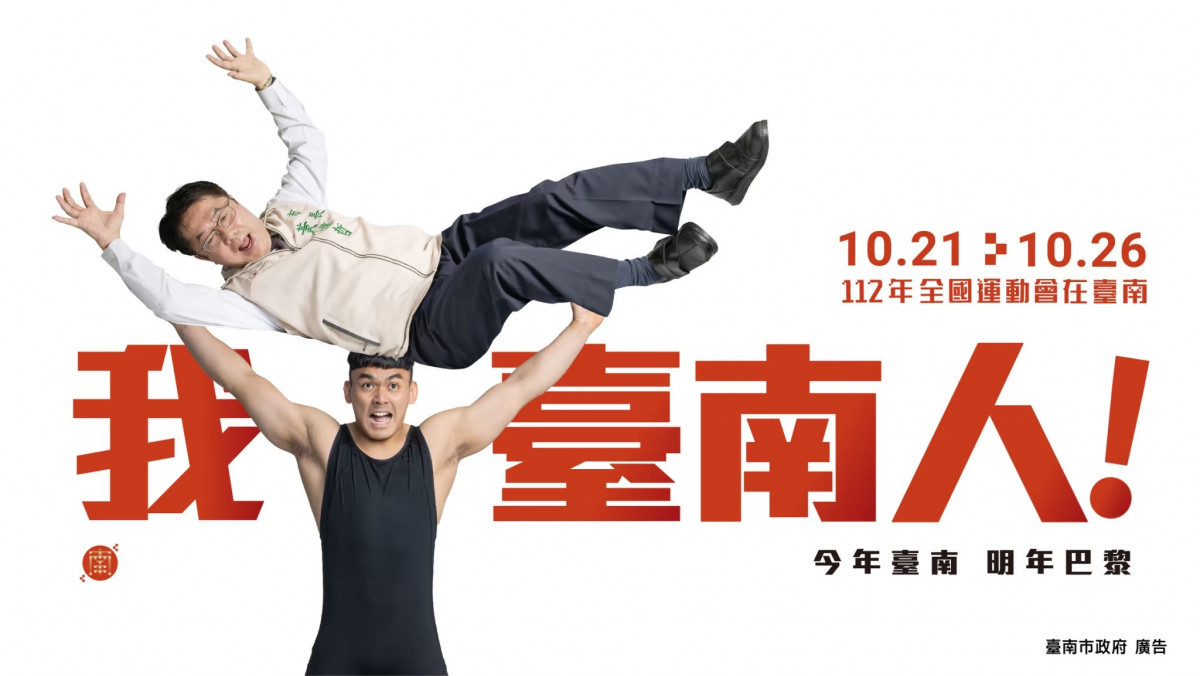 全國運動會即將在10月21日正式登場,為吸引市民觀看賽事、為選手們加油,臺南市政府特別邀請臺南子弟拍攝宣傳看板,並發揮創意、大玩與競賽相關諧音梗,例如舉重選手陳柏任抬起黃偉哲市長,標語是「我臺南人」(我抬男人),讓路過民眾不禁莞爾,網友們也留言「這很臺南」、「超有趣XD」、「原來那個被抬的男人是市長哈!」