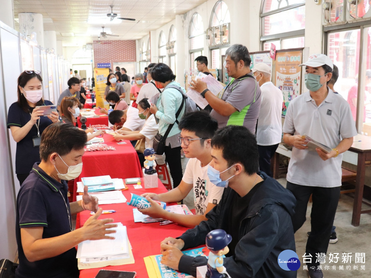 勞動力發展署雲嘉南分署14日上午於斗六南聖宮舉辦「求職順利GO GO GO、保庇找到好頭路」大型徵才活動,除了邀集30家廠商合力提供逾800個工作機會,還結合童玩多元市集,讓求職民眾找工作之餘,也能攜家帶眷參與,大人小孩共度愉快的周末,現場估計超過千人參與。