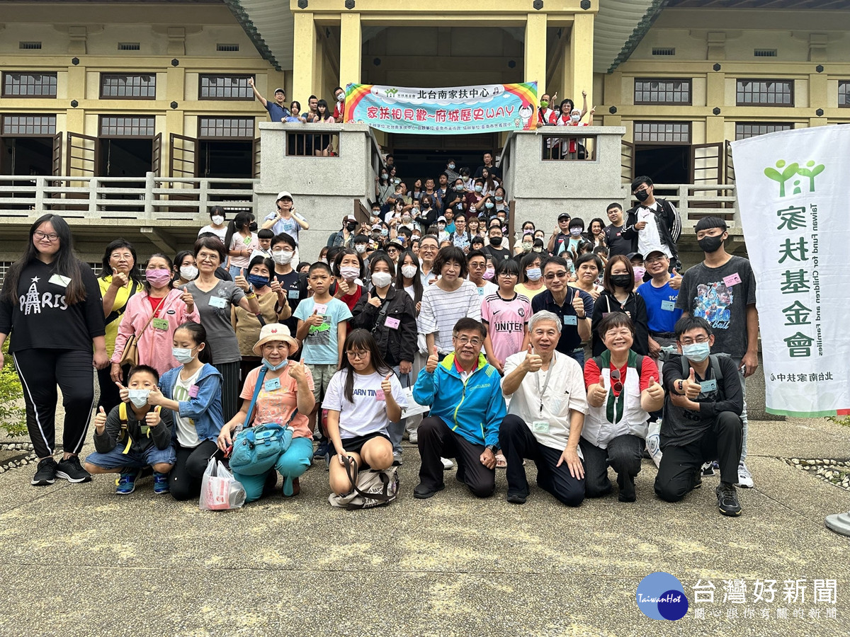 北台南家扶15日上午,於台南武德殿舉辦「府城歷史WAY」認養人與受助兒童愛的連線相見歡活動,共有來自全省各地的61名認養人與83名配對的家扶兒及其家人共144人共聚一堂進行愛的連線相見歡。