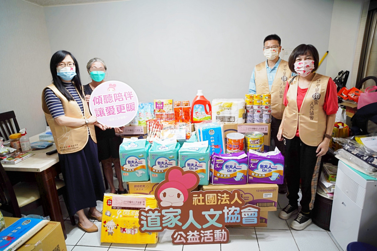 因病痛所苦、行動不便的弱勢長者,難以自理生活,經濟狀況更是拮据,迫切需要外界用愛及實際行動關懷。道家人文協會於30日舉辦協力應援‧暖心補養~宜蘭縣弱勢家戶物資捐贈活動,由協會理事長張旖帶領志工自費至宜蘭縣,捐贈四戶弱勢長者營養補給品、成人紙尿布、復健褲等居家保健護理用品,另提供方便易食用的高鈣奶粉、沖泡粥品、100%純果汁、營養餅乾等食品,與電熱水瓶、衛生紙、沐浴清潔用品等物資共167件,為長輩們補充營養並紓解生活不便。