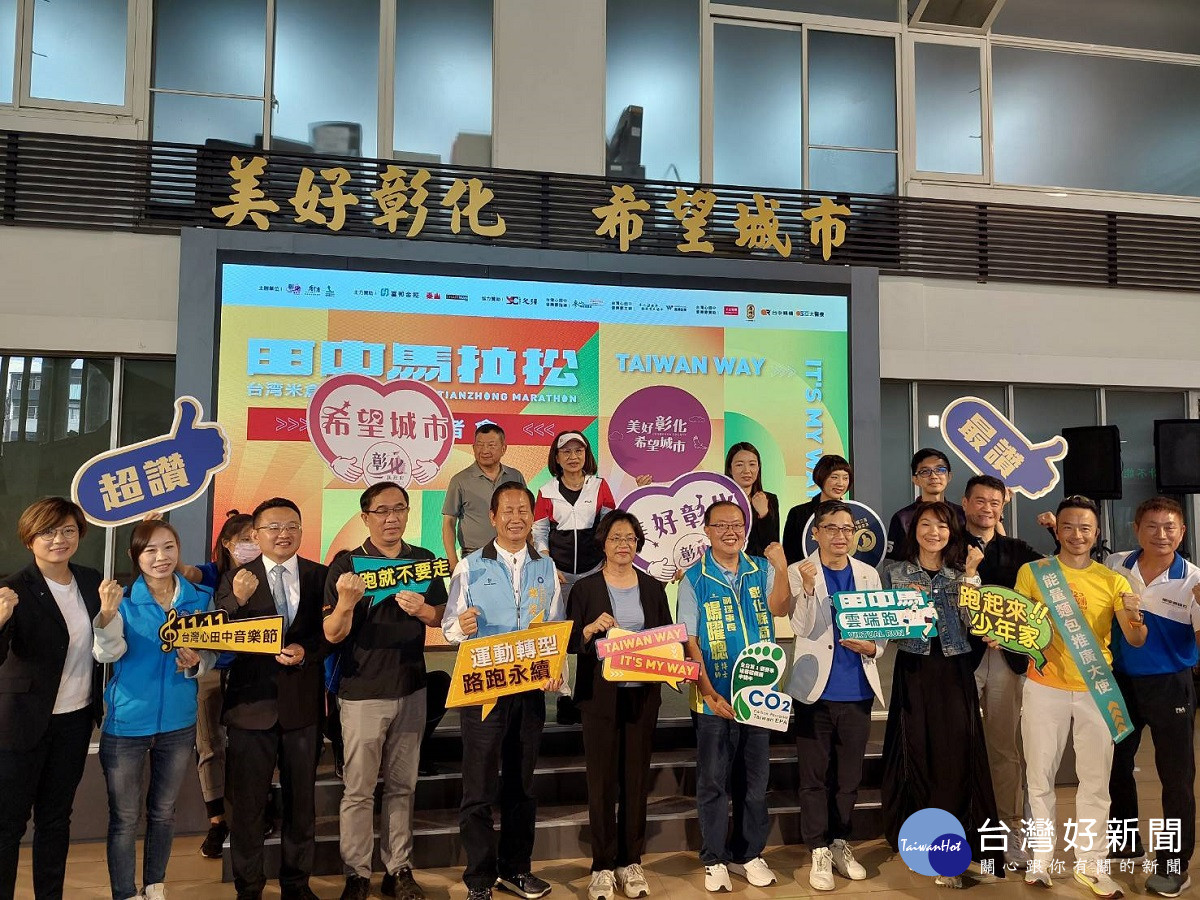 7日在彰化縣府中庭舉辦的記者會上,縣長王惠美表示,田中馬不僅是全台灣最具人情味的馬拉松,也持續致力於推動永續環保,今年更獲得台灣德國萊因技術監護顧問股份有限公司頒發全國第一張碳足跡查驗認證,邀請參賽選手以及全國民眾一起來田中看美景、逛市集、吃美食、聽音樂,感受Taiwan Way!彰化味!