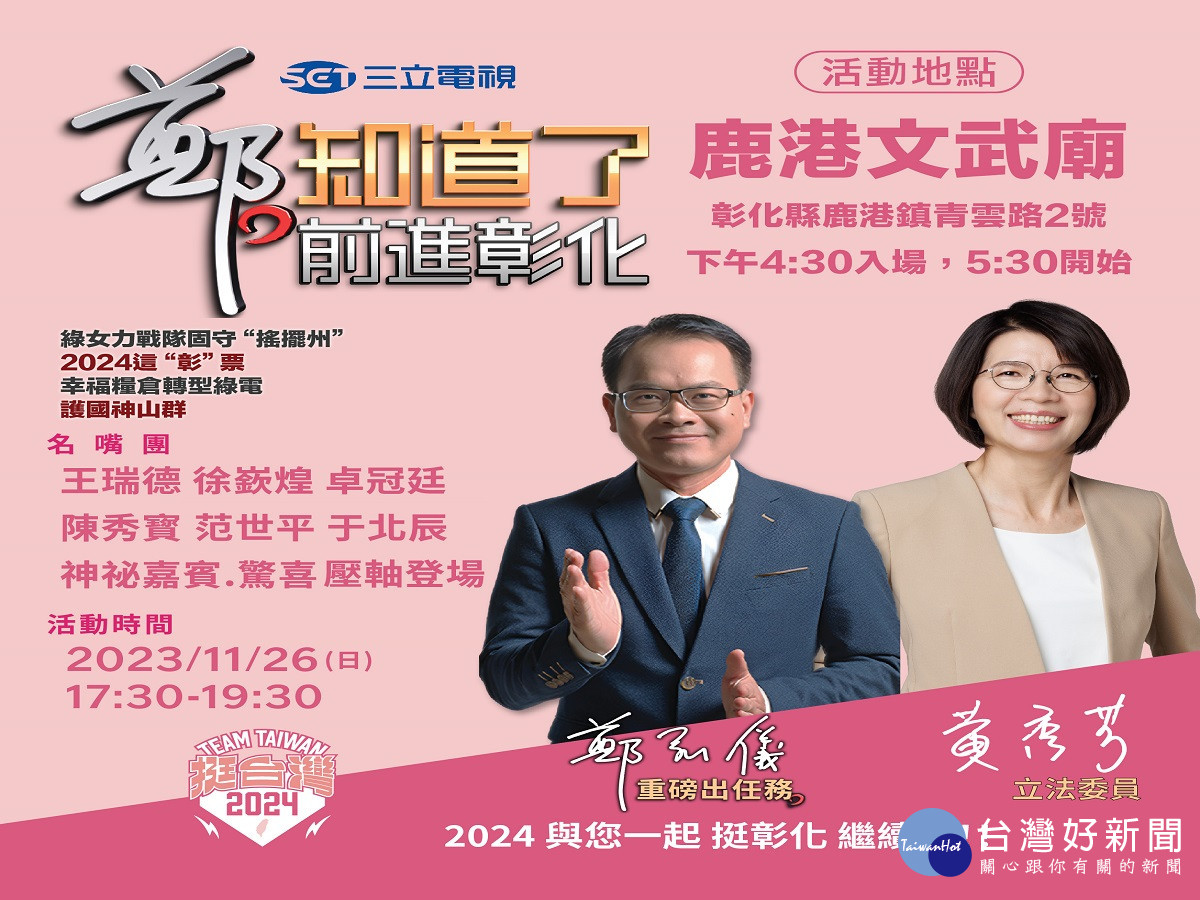 黃秀芳說,造勢活動馬不停蹄,支持者非常熱情,讓她很感動,她也率領團隊四處掃街,她知道鄉親都知道她「用心聽、認真做」的拚搏精神,她也會全力以赴,把一天當五天用,週日(26日)傍晚5點半,名主持人鄭弘儀主持的《鄭知道了》節目要到彰化鹿港文武廟錄影,她和好同事立委陳秀寳也將聯袂上節目,一起為守護台灣發聲!