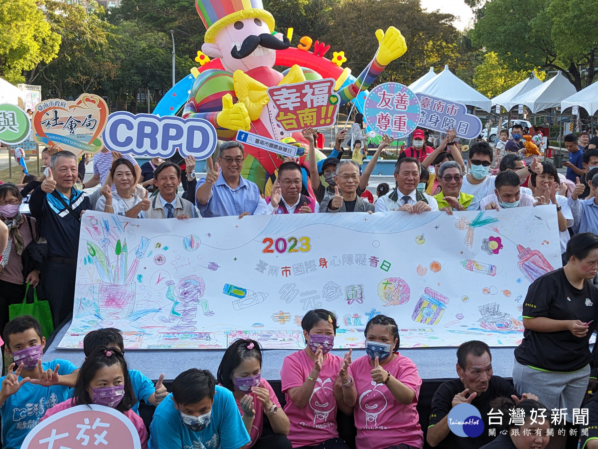 為響應聯合國每年12月3日的「國際身心障礙者日」,臺南市政府社會局25日舉辦2023年臺南市國際身心障礙者日「多元參與 幸福領航力X大放藝采」活動,臺南市政府副秘書長尤天厚率領社會局葉誌明副局長、新營區翁振祥區長及承辦單位私立心德慈化教養院曾仲豪院長,共同於畫布揮灑繽紛色彩,宣誓臺南市公私協力共同營造身障友善共融生活的城市。