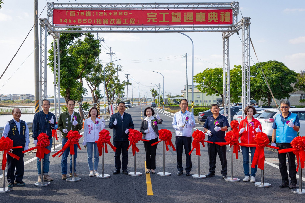 宜蘭縣政府28日舉辦「宜18線(12k+220~14k+850)拓寬改善工程」完工暨通車典禮,林姿妙縣長主持剪綵儀式,致詞時表示拓寬後道路將有效改善過往路幅狹小動線不佳且受限路幅寬度影響造成會車不易的問題,感謝相關單位及居民的配合,一同見證這歷史性的一刻。