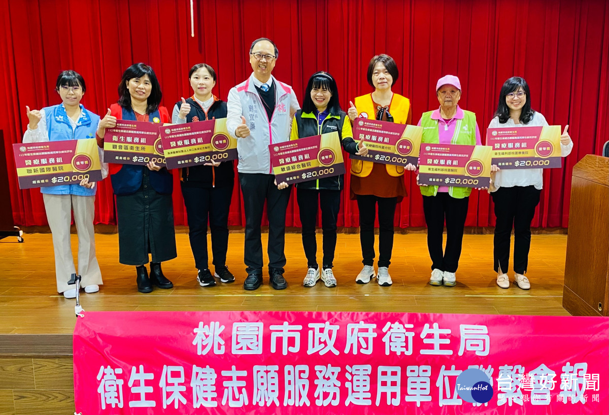 桃園市衛生局召開112年度「衛生保健志願服務運用單位聯繫會報」,衛生局劉宜亷局長頒獎表揚今年度表現優良單位。