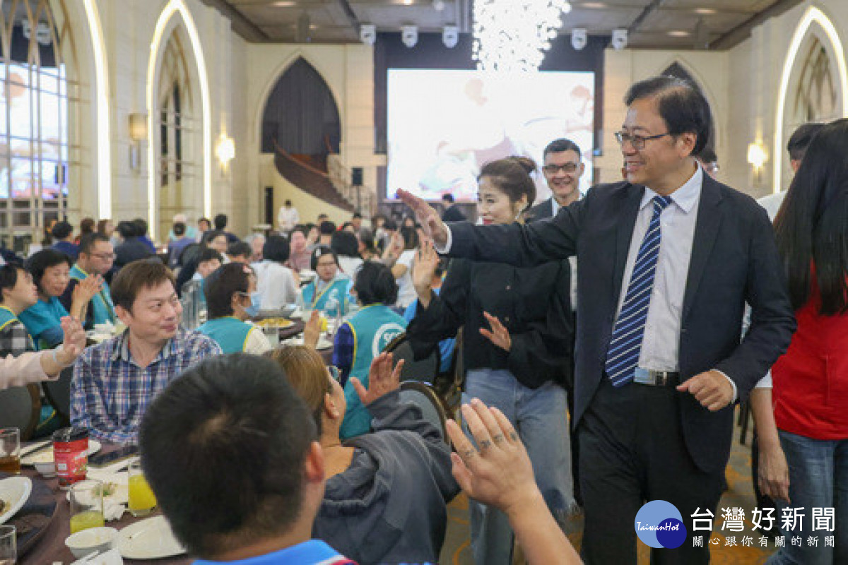 張善政說,今日的感恩餐會中,大家難得齊聚一堂,相信每個人都是心存感恩,都有不同的感恩對象,而他代表桃園市政府,感謝TVBS信望愛永續基金會、感謝所有牧者,從年頭到年尾都付出愛心,讓桃園成為一個充滿愛的城市。包括立法委員萬美玲、市議員舒翠玲、TVBS 信望愛永續基金會董事長陳文琦、副董事長黃宗仁等均一同出席活動。