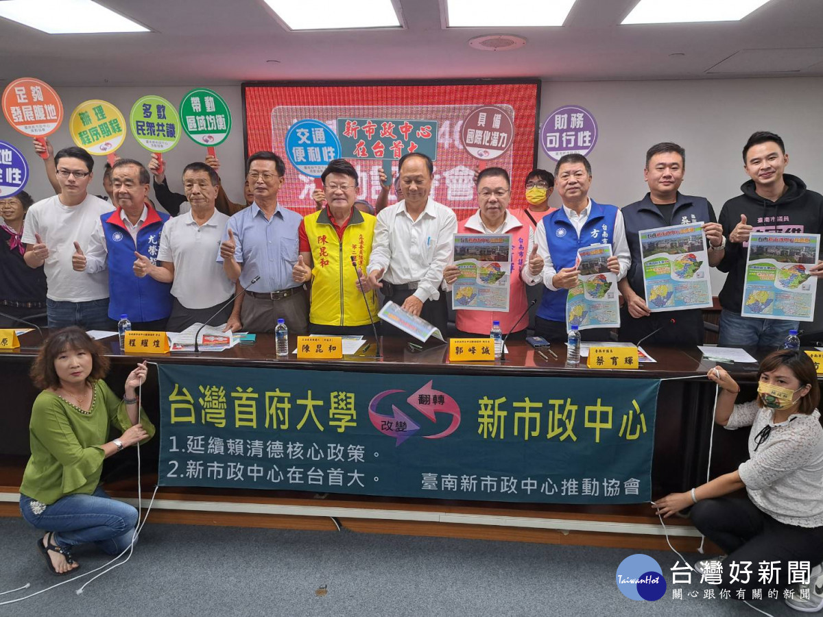 台南市第二選區立委候選人陳昆和14日與蔡育輝、方一峰、趙昆原、林冠維、周奕齊、吳禹寰、尤榮智等跨黨派議員,偕同「台南新市政中心」推動協會程耀煌會長、郭峰誠執行長共同召開記者會,宣布全力推動「台南新市政中心」遷設於麻豆區「台灣首府大學」原校地。