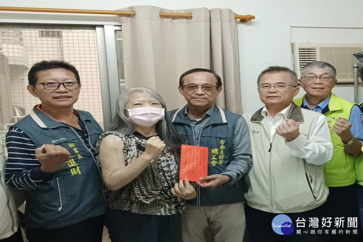 關懷職災弱勢勞工,台南市勞工局與台南市總工會、大台南總工會、台南市產業總工會、台南市職業總工會、台南直轄市總工會等,前往永康區 北區、安南區等地,訪視關懷7位職災弱勢勞工家庭,共致贈9萬元慰問金。勞工局長王鑫基表示,感謝5個市級總工會協力參與職災慰問服務,也呼籲事業單位提供安全的工作環境,確保勞工的職場安全。