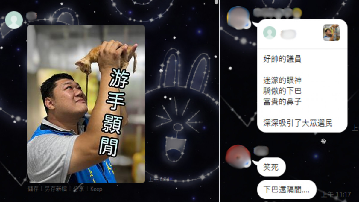 選舉期間,各式各樣梗圖出現,大多針對選舉人的人設與時事進行設計,甚至於是攻擊。但在南投第二選區,藍綠雙方陣營在抽籤當天,綠營蔡培慧母親在現場「游手顥閒」諧音梗來批皮藍營的游顥,隨即在網路側翼不久就製作游手顥閒梗圖,梗圖中游顥出現浪浪毛小孩的互動,但搭配文字後疑似有嘲諷的意味。