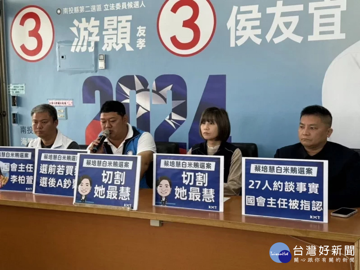 有「貪官剋星」之稱的國民黨不分區立委候選人吳宗憲,今天偕同黨籍南投縣第二選區候選人游顥,召開記者會爆料已有證人指認蔡培慧國會主任李柏萱,上週六(6日)南投警方已開始大動作約談相關27人到案偵訊。蔡培慧則呼籲選民「假消息勿轉傳」,被指控的李柏萱則反駁「捐贈活動游顥團隊代表江秀春也在場」。