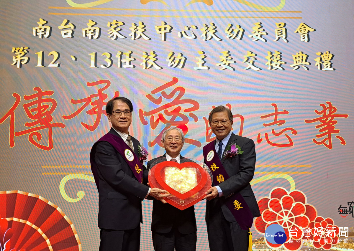 南台南家扶中心後援團體「扶幼委員會」日前舉行扶幼主委交接,由第十二任主委黃全永交接給第十三任主委康登春。