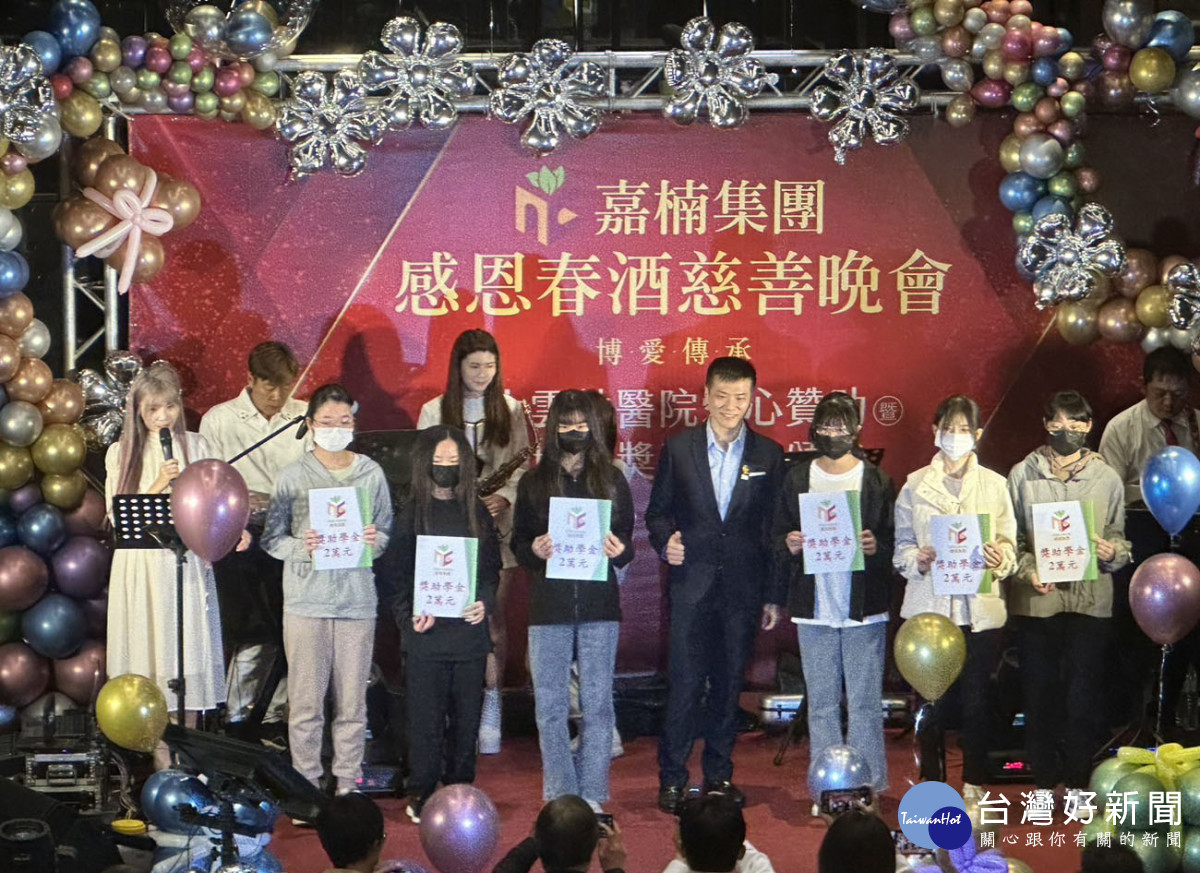 嘉楠集團昨(16)日在嘉義市嘉楠風華酒店舉辦公益晚會,集團總裁陳和春代表捐贈雲林台大醫院一輛近300萬元的八噸餐車,及200萬獎助學金給11所國中小共100位學生。陳和春表示,企業取之於社會,更應回饋社會,盼藉此造福鄉里,讓社會充滿愛與希望。