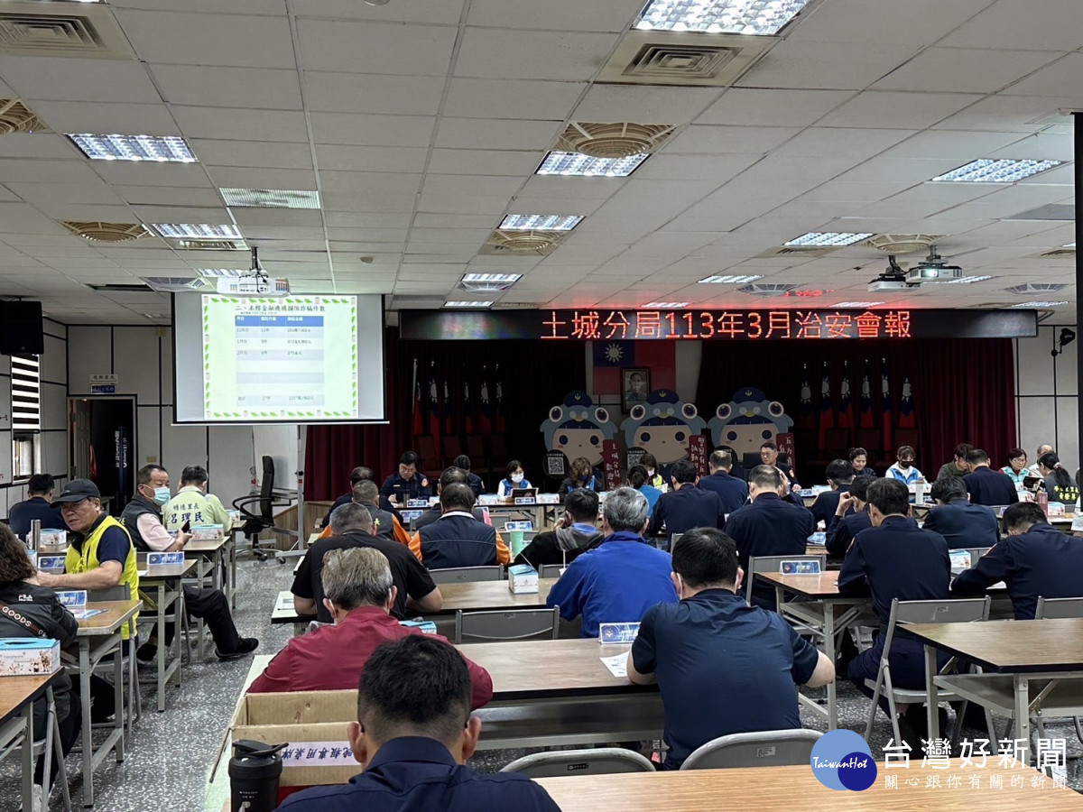 土城警分局昨(25)日下午舉辦3月份治安會報,邀請轄內各民意代表、里長、學校及相關警政單位共同參加,希望透過會報,將轄內重要事項傳達至民眾。分局長謝龍富表示,警民合作有助於轄區治安的穩定,透過治安會報能促進雙方意見交流,讓警民關係更親密,共同為土城轄區治安努力。