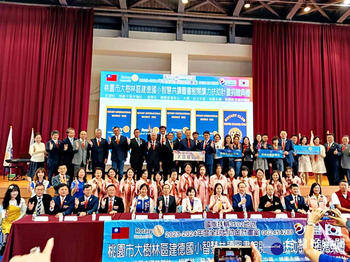 國際扶輪3502地區桃園中區扶輪社主辦全球獎助金贊助建德國小,打造的智慧共讀圖書館於3月26日舉辦揭牌儀式,出席貴賓有教育局長劉仲成、市政顧問呂朝福、溫碧雲、市議員陳美梅及扶輪社社員共同與會見證意義非凡的揭牌活動。劉仲成局長表示,感謝扶輪社桃園中區社主辦,國際配合社(韓國首爾南山社)、協辦為大園社、桃園永晴社、桃園航空城社、台北市中區社共同贊助捐贈總計新臺幣一百九十萬元,以提升和改善國小孩童基礎設置,同時感謝扶輪人愛心不落人後。