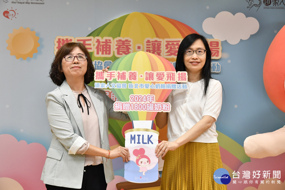 中華道家人文協會響應「新北市好日子愛心大平台」,已連續六年捐贈嬰幼兒奶粉,今(28)日舉行「攜手補養讓愛飛揚」捐贈儀式,將捐贈1,800罐嬰幼兒奶粉給新北市弱勢家庭,由社會局副局長許秀能代表出席,並頒贈感謝獎牌。