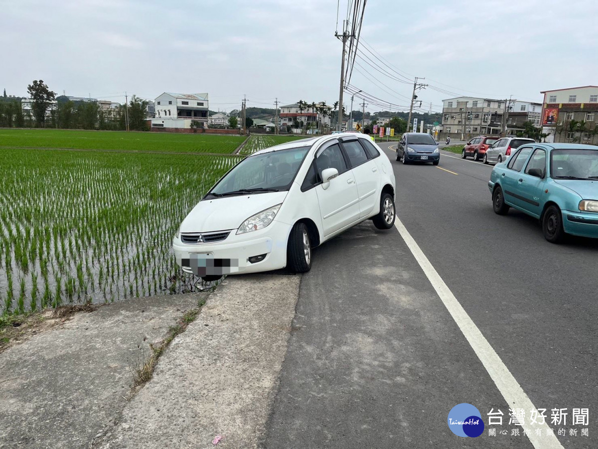 女子路邊停車不慎卡稻田上 波麗士協助脫困