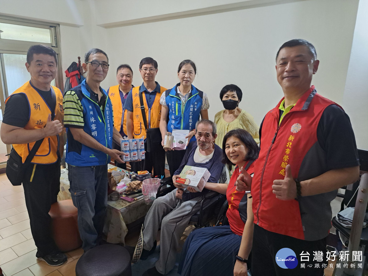 新北市新聞記者職業工會總幹事林富貴、顧問林睿明及慈善委員會委員陳沛晴等,今(15)日下午在新北市榮服處總幹事吳曉慧及榮欣志工偕同下,前往中和區關懷2位弱勢的榮民眷,分別致贈慰問品給二位受關懷的榮民眷。