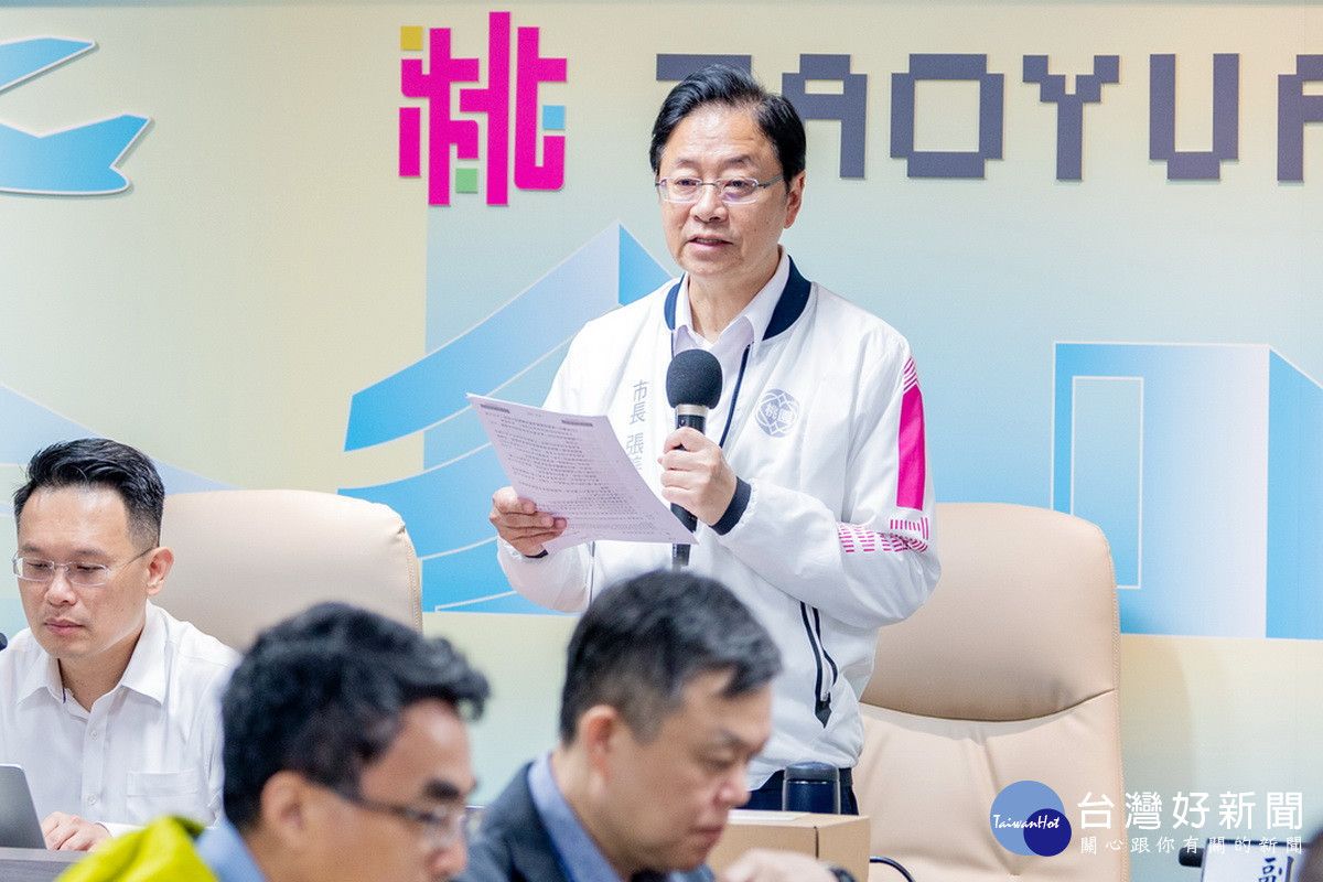 桃園市長張善政24日主持市政會議時表示,桃園有許多公共工程如火如荼進行中,他上任後一直很重視工程的品質及進度,市府團隊上緊螺絲加速趕工,目前包括捷運綠線高架段工程、車站機房及高鐵特定地區污水管線修繕等工程進度皆超前,期許相關局處同仁繼續努力,並請其他局處與工程單位相互配合,讓桃園各項重大公共建設如期如質上路。