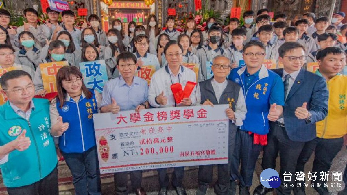 張市長頒發大學金榜獎學金20萬元予南崁高中學生。