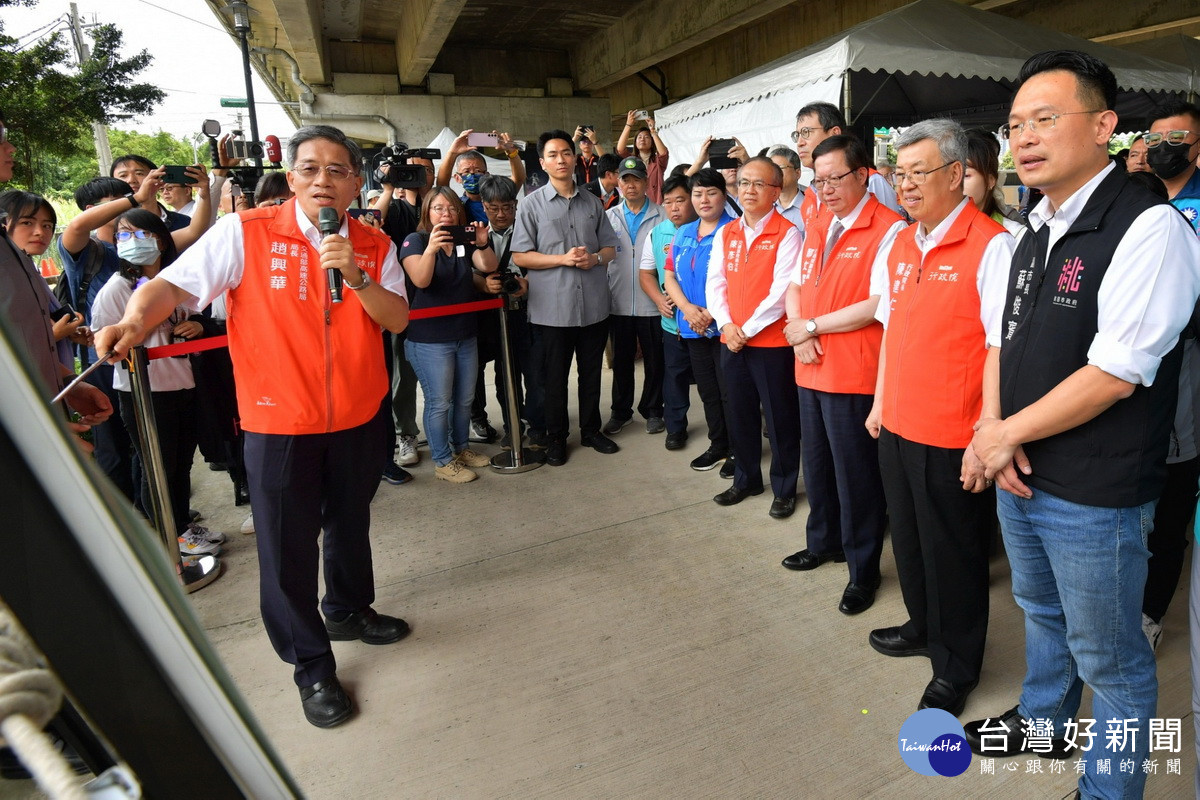 行政院長陳建仁於視察「國道2號增設中路交流道」計畫中致詞。