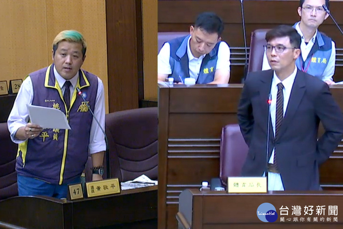 針對演唱會租借場地,桃園市議員黃敬平質詢體育局長許彥輝。