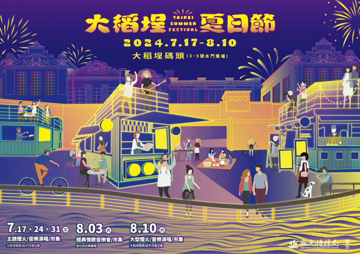 蔣萬安介紹,全臺最具代表性夏季活動「2024大稻埕夏日節」,將於7月17日至8月10日在大稻埕碼頭登場,除了主題煙火秀及音樂展演,更特別打造「水岸光廊」,在大稻埕碼頭河岸(淡4-5號水門間)設置超過500公尺的燈飾,邀請國內外旅客到大稻埕漫步河濱、拍照打卡;臺北自來水園區也在暑假期間推出「2024臺北親水節」,園區增設戲水設施打造遊客戲水休憩空間,還有熱鬧的開幕活動、園遊會及互動表演等,讓遊客度過歡樂清涼的暑假。