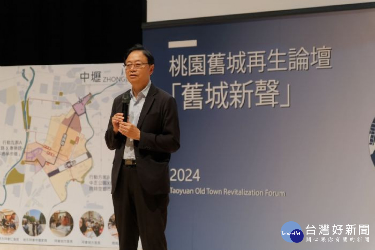 桃園市長張善政12日出席「桃園舊城再生-舊城新聲國際交流論壇」,與來自英國專家學者交流人本城市治理,同時也公布桃園舊城再生新品牌形象:「桃x 45 一探舊境」LOGO,隨著暑假陸續動工的桃園、中壢舊城環境改造,此次論壇不乏都市設計專家參加,桃園市建築師公會、不動產同業公會也都出席關切舊城再生工作。
