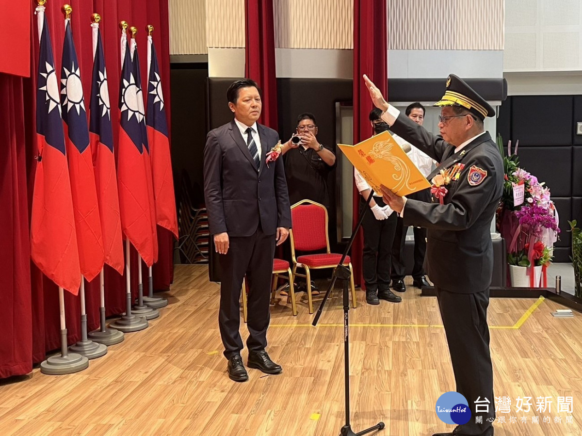新北市政府消防局新任局長陳崇岳昨(1)日宣誓就職,副市長朱惕之擔任監誓人,第五大隊義消大隊長的立委吳琪銘、議會副秘書長李政勳、臺北市政府消防局莫局長、基隆市消防局游局長、新北義勇消防總隊幹部及各界貴賓均到場觀禮。
