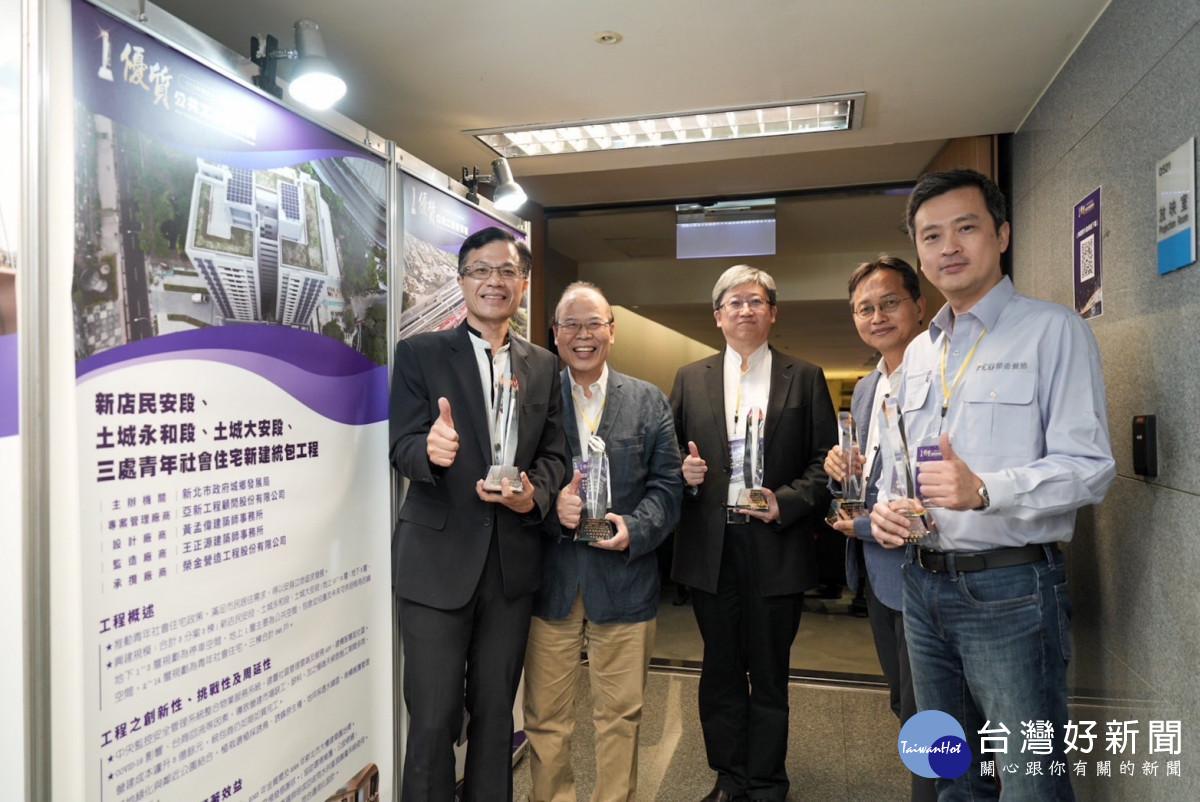 新北市政府致力推動社會住宅,繼112年新店民安段社會住宅獲得國家卓越建設獎最佳規劃設計類金質獎後,今年度新店民安段、土城永和段、土城大安段三處社會住宅共同獲頒公共工程優質獎殊榮,公共工程優質獎為表彰參與本市轄內公共工程建設之優質廠商、機關及人員,以增進工程品質及進度,獲得此獎更肯定新北市政府城鄉發展局與統包團隊黃孟偉建築師事務所、榮金營造工程股份有限公司及保創科技股份有限公司,共同建構安全的施工環境,攜手打造優良品質的社會住宅。
