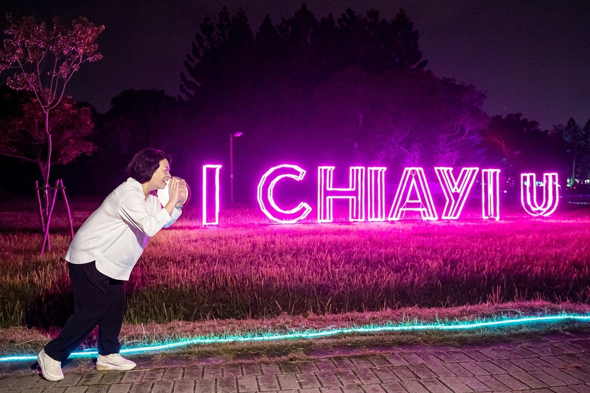 張婉芬表示,很開心這件作品真的助攻新人傳愛,現在「I Chiayi U」裝置移至嘉義市政府北棟大樓前,每晚都會亮起溫暖燈光傳愛。百萬YouTuber 蔡阿嘎去年初也曾帶著太太二伯來此打卡,新的一年,歡迎大家來此拍照傳達心意。