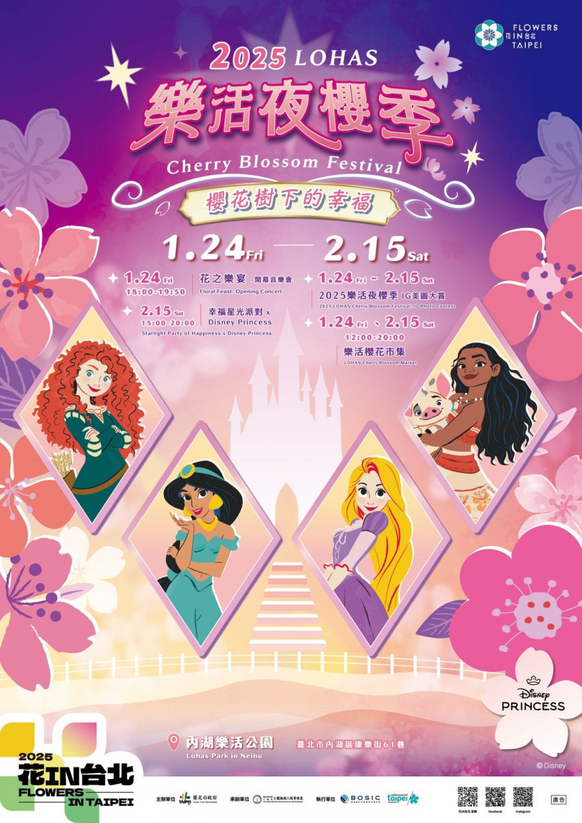 台北市2025年迎來雙櫻花季盛事!陽明山花季24日於花鐘廣場正式揭幕,以「讓愛在心中綻放」為主題,與迪士尼公主聯名,打造夢幻童話世界;緊接著,內湖樂活公園的樂活夜櫻季也同步啟動,以「櫻花樹下的幸福」為主題,帶來光影交織的浪漫夜櫻體驗。兩大花季皆結合豐富活動與優惠,邀請市民及遊客一同感受台北春日繽紛魅力!