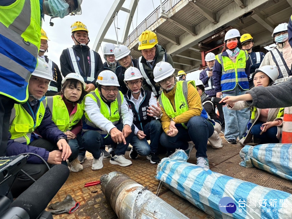 另請高灘處及施工團隊在最後構台拆除作業仍然務必要重視安全,盡快將新月橋周邊環境復原,還給大家一個安全且舒適的休憩場所。黃裕斌表示,新月橋因屬吊索橋梁系統結構,為更換吊索作業需求搭設308公尺跨河構台,目前修繕工程已近尾聲,4月底汛期前會將全部跨河構台拆除完畢,恢復周邊使用空間。
