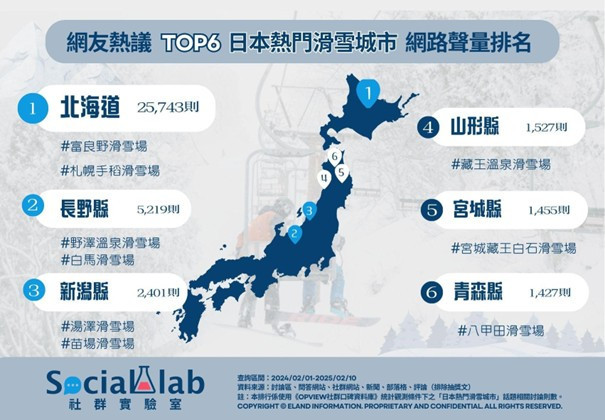 《Social Lab社群實驗室》本次透過《OpView社群口碑資料庫》追蹤近一年「日本熱門滑雪城市」話題的網路聲量表現,帶您了解網友熱議六大日本滑雪城市有哪些。
