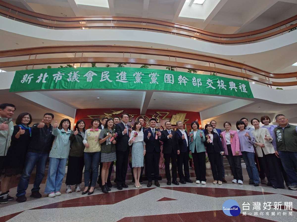 新北市議會民進黨團今(4)日舉行幹部交接典禮,民進黨中央黨部秘書長林右昌、新北市黨部主委蘇巧慧、新北市長侯友宜及市府團隊、蔣根煌議長、莊瑞雄立委、廖本煙前立委、羅致政前立委等出席。黨團新任總召為廖宜琨議員、副總召蘇錦雄議員、幹事長山田摩衣議員、書記長顏蔚慈議員。