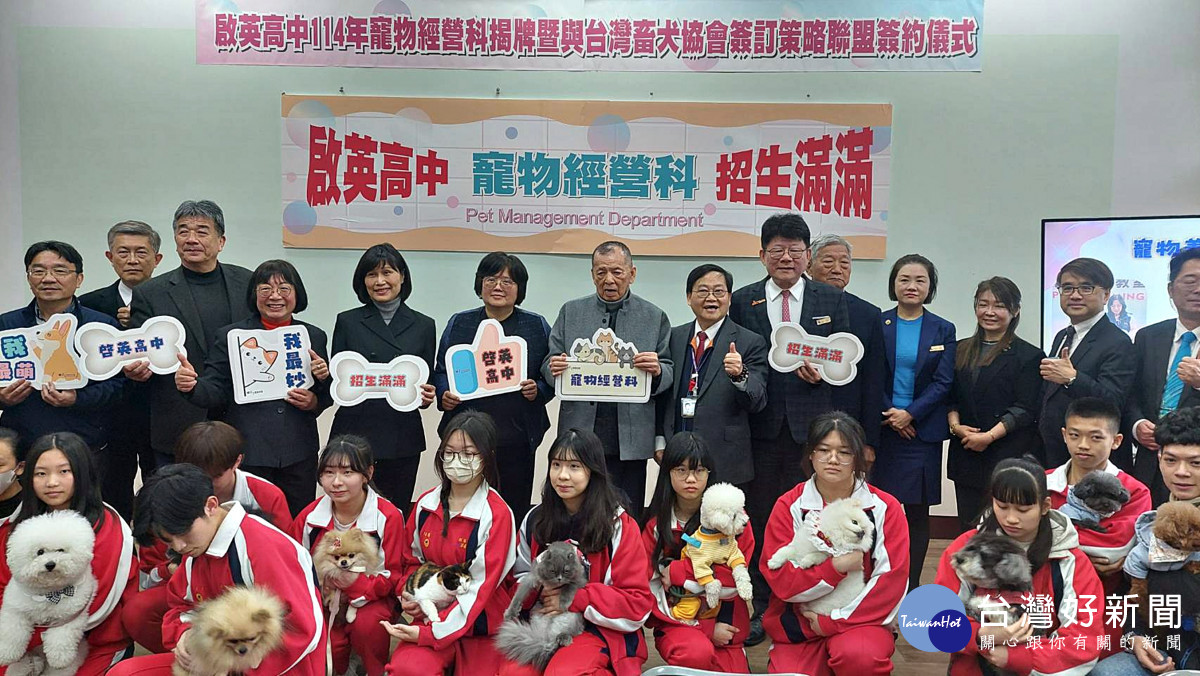 除揭牌儀式外,啟英高中也與領導產業之台灣畜犬協會簽訂策略聯盟產學合作備忘錄,相信透過與臺灣畜犬協會的產學合作,將提供更豐富實作的學習內容,增進學生專業技能與實作能力。