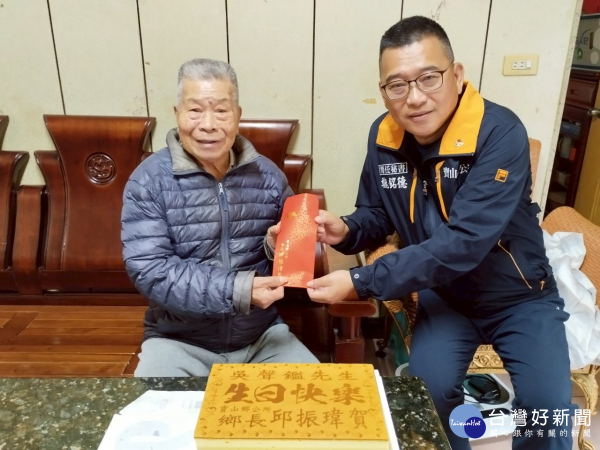 寶山鄉有7位九旬高齡的壽星4月份生日,寶山鄉公所送上每人2千元的生日禮金以及蛋糕,由簡任秘書魏銘德代表送給長者寶貝們,獻上最誠摯的祝福。