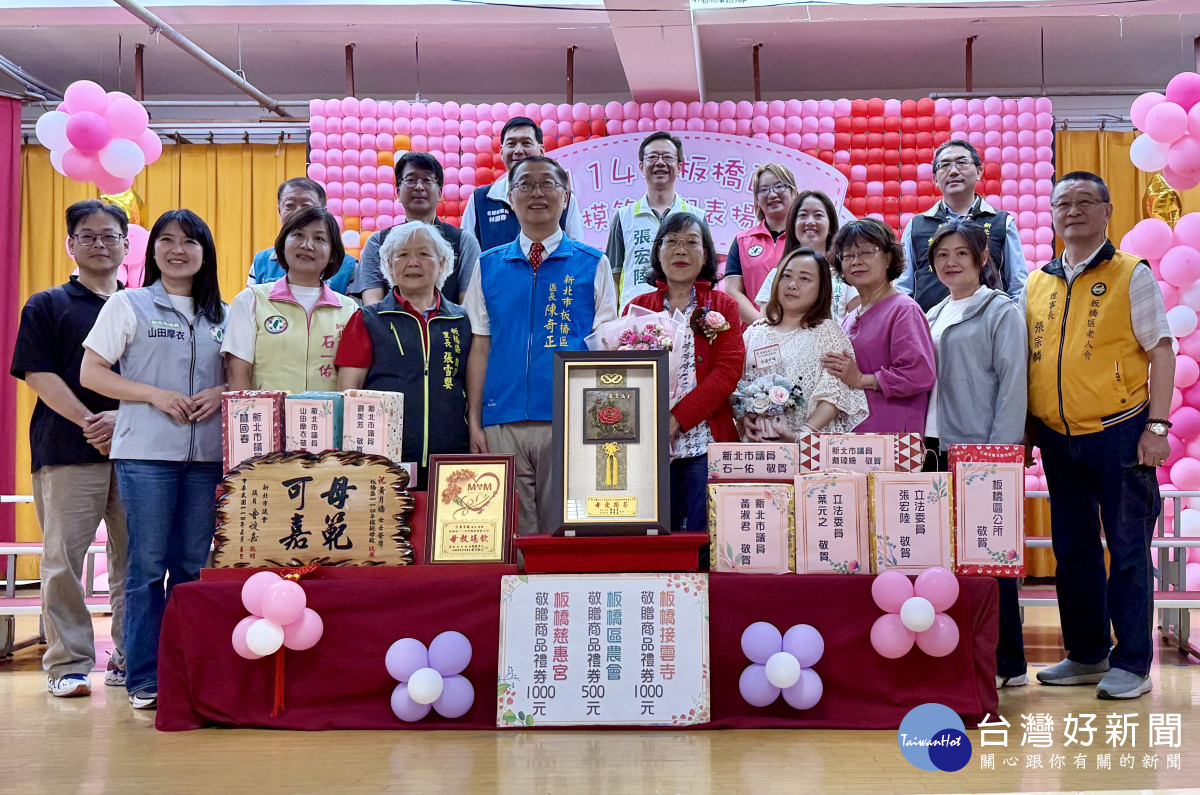 歡慶母親節,板橋區公所提前為全天下母親獻上最誠摯的敬意及祝福!今(3)日表揚44位模範母親,表彰其無私無盡如暖陽般的母愛,並祝媽媽們母親節快樂!本次表揚活動獲獎者中,最年長者為89歲,曾榮獲新北市政府績優宗教個人奉獻獎的李彩連媽媽;而最年輕者為現年44歲,悉心照顧腦麻孩子並擔任特教助理老師的鄭詩卉媽媽。