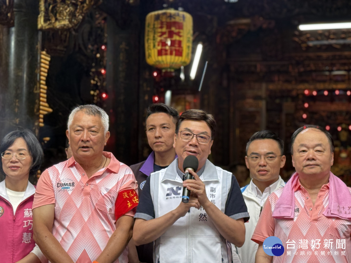 農曆五月初六是清水祖師得道日,新北市副市長劉和然今(1)日前往淡水清水巖參與一年一度的「淡水大拜拜」清水祖師遶境,在喧天鑼鼓聲中,與會貴賓一同恭請蓬萊老祖金身起駕,為正日遶境揭開序幕,祈求新北市四時無災、八節有慶。