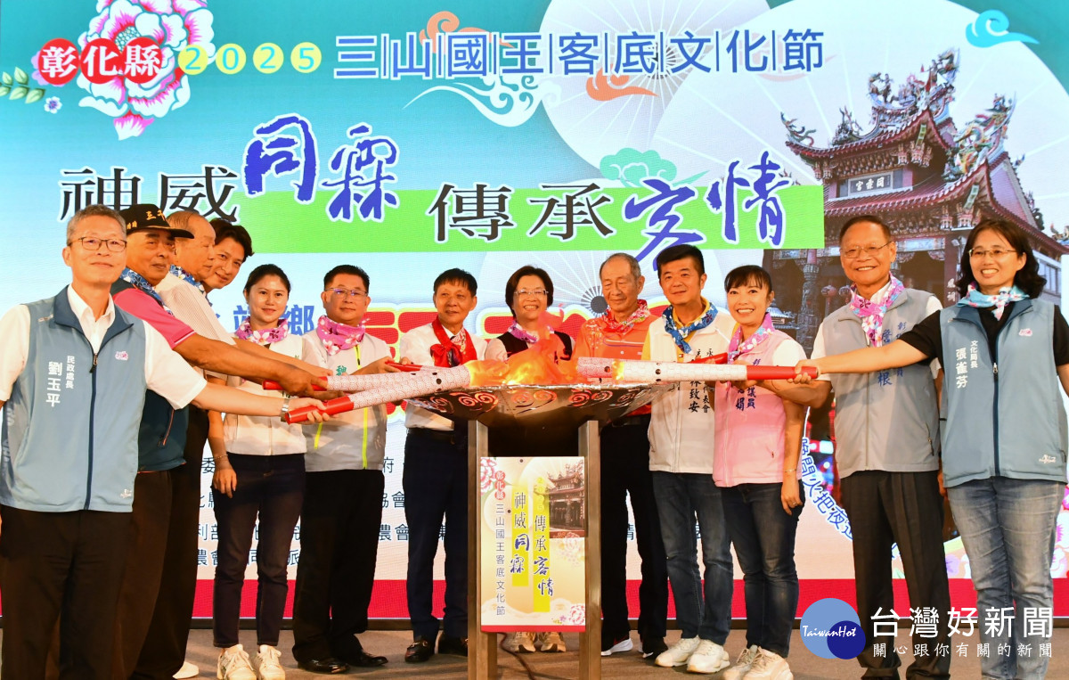「火把一亮,三山國王就到了!」一句熱情的呼喊,揭開客庄盛事的序幕。彰化縣三山國王客家文化協會自91年起整合縣內三山國王信仰,今年邁入第24屆,由永靖鄉同霖宮承辦的「2025彰化縣三山國王客底文化節」將於10月25、26日熱鬧登場。今(20)日上午縣府舉辦記者會,縣長王惠美與協會會長胡祥畯、同霖宮主委黃一清及多位地方代表齊聚,誠摯邀請民眾共同體驗最有客庄味的文化盛典。
